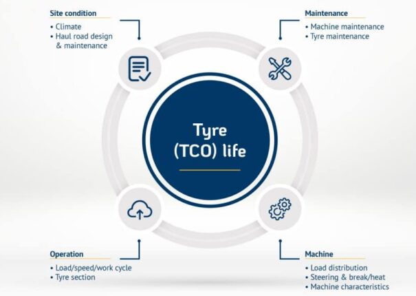 Bleiben bei German Switch to EnglishDie Lebensdauer der Reifen und die Gesamtbetriebskosten werden von mehreren Faktoren bestimmt, wie in Abbildung 1 dargestellt.