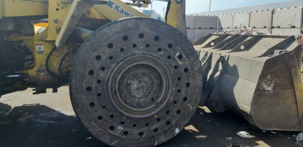 The tyres have been running for one year and are still in excellent condition. The tyres have even wear without chipping, which ensures longer tyre life under the toughest environments in a hard terrain waste-recycling plant. Also, the driver reported driving comfort that shows the cushion effect and quality of all good solid tyre brands.