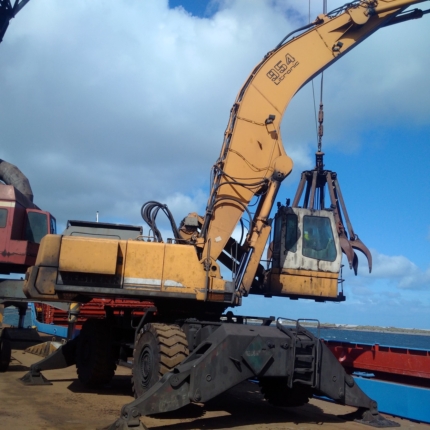At this ore and scrap metal transshipment port in Dunkerque, a Liebherr A954 Litronic Material Handler is equipped with 23.5-25 Magna MA600 Super Solid tyres.