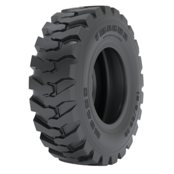Extra-reinforced bias tire for high stability in heavy construction applications.